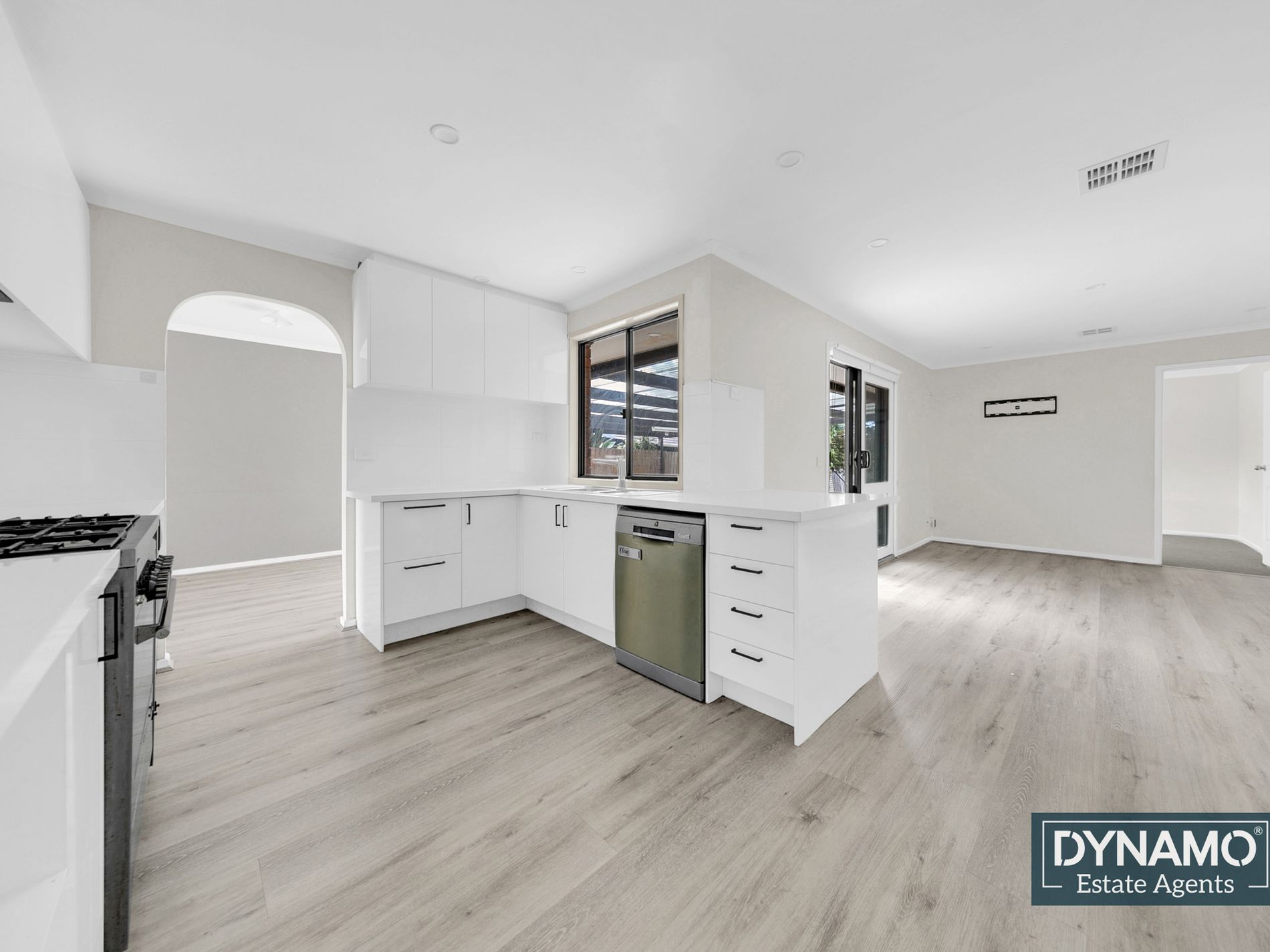 · Kitchen with dishwasher and stainless-steel oven